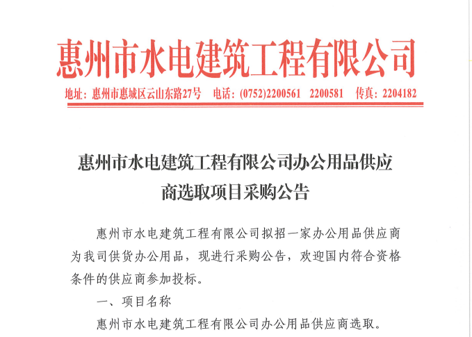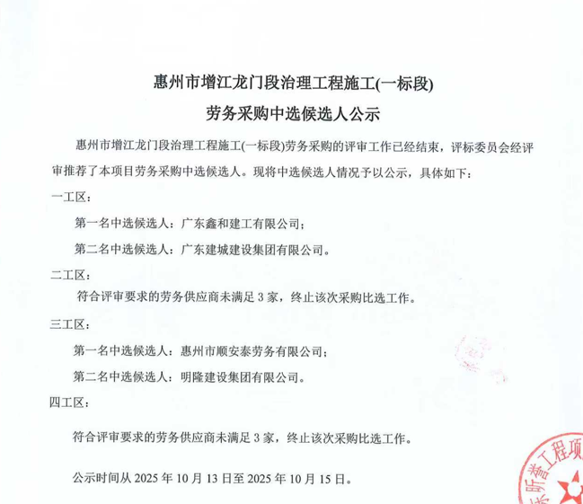 惠州市水電建筑工程有限公司勞務(wù)供應(yīng)商庫擴庫評審結(jié)果公示……